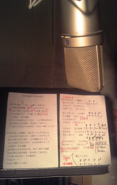 昨日、数ヶ月に渡って取り組んでいたレコーディングプロジェクトがようやく完了した!! 2月の頭から制作に取り掛かり、初めは自宅スタジオと、アフロ君の自宅スタジオを行き来し、俗に言うデモ音源の制作から始めた。 僕の頭の中に広がっている曲&音世界をレコーダーというキャンバスの中に広げ、様々な楽器という絵の具で色彩豊かに描く事で、参加して貰うメンバーに僕の表現したい事、世界観を伝え、そしてそれらを共有して貰う事から全てはスタートする。 今回の曲は出版社から詩集を出版されている素晴らしい作詩家の方からご依頼を頂いたものでした。 詳しく説明しますと、昨年末にその方にお会いした時に 「僕の書いた詩に二村くんの歌声を乗せたい。どうしても君の歌声じゃないとダメなんです。君の歌声を聞いていたら涙が止まらないんです。」 との何とも嬉しいお言葉をかけて頂き、それなら作曲も僕が担当してしまおうという運びになったのです。 何度も何度もラブコールを送って頂き、僕もその気持ちに、そして熱意に大きく応えたいという一心で無い知恵を振り絞って夜な夜なあぁ〜でもない、こぉ〜でもないと曲作りに奔走したのでした。 その方から頂いた詩のタイトルは 「自分を変えた あの時を」 という両親や自分が生きて来た中で出会った人々に対する“感謝”の気持ち、人生について深い想い、考えで綴られたそれはそれは素晴らしい詩でなのであります。 僕が普段テーマにしているような内容ではないだけに、僕が得意とするAOR〜WEST COASTなテイストに仕上げてはせっかくの詩が台無しになると思い、デモ音源を録音して行くその過程で軌道修正を何度も何度も重ねました。 “泣きの1曲”にどうしても仕上げたいという思いが強かったので、僕がそう思う曲を片っ端から聞き直して色々と研究も重ねました。 そこで辿り着いたゴールはカーペンターズだったのです(-^〇^-) 改めて彼らの音楽の素晴らしさに触れると共に、自分が今取り組んでいる楽曲を昇華させたいという強い想いに完全に頭の中が支配されたのは言うまでもありません(笑)。 ようやく昨晩楽曲は完成した訳ですが、 「果たしてこれで良かったのだろうか?作詩家の方はこの曲で満足して頂けるだろうか?」 曲を何度も何度もリピートして聞いているとそのような思いが去来します。 ですが、自分が出来る限り、そして心の底から喜んで頂きたいという僕の強い願いは必ずやその曲に深く込められていると信じています(-^〇^-) 未熟者ではありますが、“一生懸命”という濃いぃ〜スパイス(笑)が随所に散りばめられていますから(-^〇^-) 昨日まで毎日毎日楽曲の事で頭が一杯だった訳ですが、ようやくその曲が陽の目を浴びると思うと大きな喜びに包まれる反面、今日からは楽しかったレコーディングの日々に別れを告げないといけないと思うと・・・深い寂しさに包まれてします(泣)。 今回培えた様々な大きな経験を糧に、僕自身の3rdアルバムの制作活動に益々奔走して行きたいと思います。 「Pray for You」を遥かに凌駕するアルバム作りまっせ(-^〇^-)!! 改めて作品制作に携わってくれた 幾島学くん(Gt) 赤木夏紀くん(Ba) 舟木陵二くん(Dr&Per) 中村ひろみさん(Key) 南川勝哉くん(Eng) に心から感謝・感謝です。 素敵な音楽仲間に心からアリガトウ(-^〇^-)!! 昨日のTD〜Mix Downに持ち込んだ我が愛機達をパチリッ!! Genelec 1030A、TC2290(ディレイ)、Lexicon PCM90(リバーブ)、TC1210(コース) ・・・・・・・・・・・・・・・・・・・・・・・・・・・・・・・・・・・・・・・・・・・・・・・・・・・・・・・・ ■7月6日(土) @三ノ宮『POLO DOG』 http://polodog.net/contents/ja/index.html 神戸市中央区三宮町1丁目3-21K-BLD 2F TEL:078-331-3945 開演 1st 20:30頃〜 2nd 22:00頃〜 ※フリーチャージ ■8月6日(火) @和歌山『OLD TIME』 http://www.first-take.co.jp/oldtime/main.cgi 和歌山県和歌山市北新5丁目70 ひめビル1 TEL:073-428-1950 開場/開演 19:00/20:00 チケット代 \1,500 ■9月7日(土) @松山(愛媛)『SINGING SPACE SING OUT』 http://singout.tou3.com/ 愛媛県松山市三番町5丁目3ー8 フレッシュリーブスB1F TEL:090-2898-5409 開演 19:30〜 チケット代 \2,300(Drink代別途要) ■9月8日(日) @西条(愛媛)『みずたまCAFE』 http://www.e-komachi.com/web/gourmet/detail.asp?tnid=38014 愛媛県西条市大新田258 TEL:0898-64-2680 開場/開演 18:30/19:00 チケット代 ¥2,000(Drink代別)
