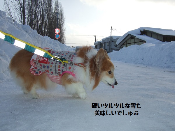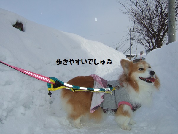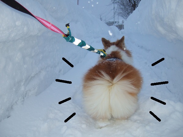 散歩も歩きにくくて疲れる〜帰宅後家の前のドフドフをせっせと雪かきして