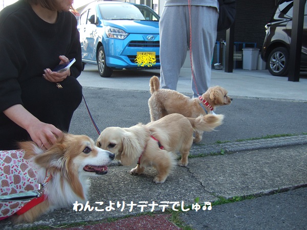散歩から帰ると、ペースケんちの前でわんこがわちゃわちゃしてたので