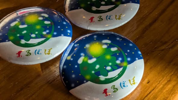 まるにぼ缶バッジを持ってまるにぼさんに♪