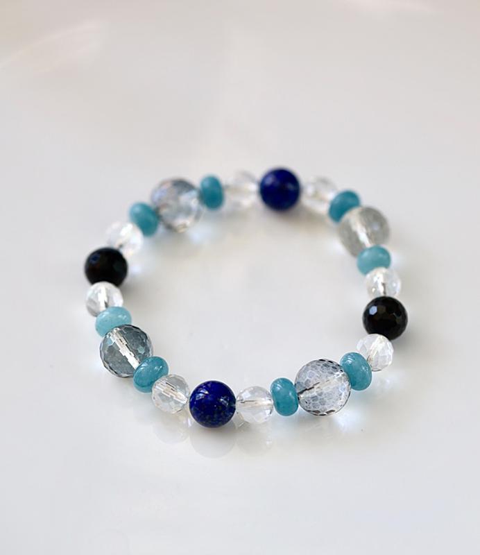 秋冬用の色味で作った天然石ブレスレット、チタンポスト(アレルギー起こしにくい素材)のパールのピアスなど。