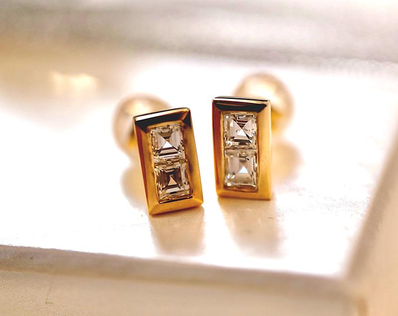 プラチナ台のリングの中の角ダイヤを今風のピアスに。