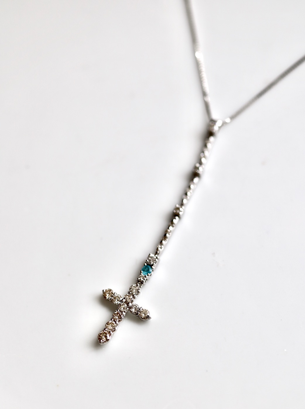 パライバトルマリンの小さなペンダントが良いアクセントの、ロングのペンダントの完成です!