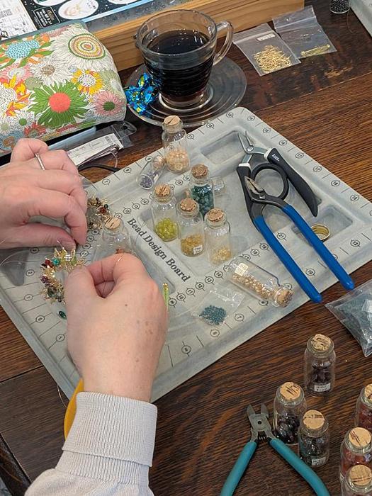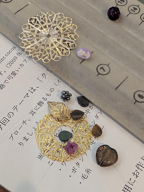 そのための小さな作品(展示用または販売用)を作ります。これまでの復習を兼ねて、ピアス、イヤリング、ブローチ、ブレスレットなど、作ってみましょう。