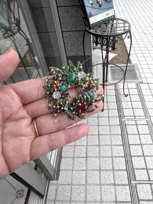 皆様にイメージを伝えるために、まずリース型のブローチを作ってみました。