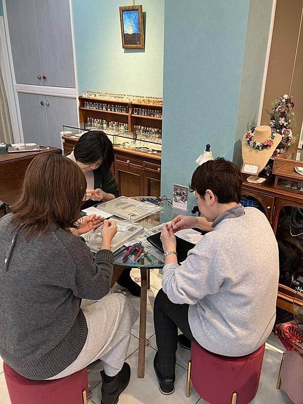 ちょっと人数が多くなりましたので、mint cocoaさんで4名、izumiジュエリーシマノ店内で3名、分かれてもらって同時の時間に開催しました。