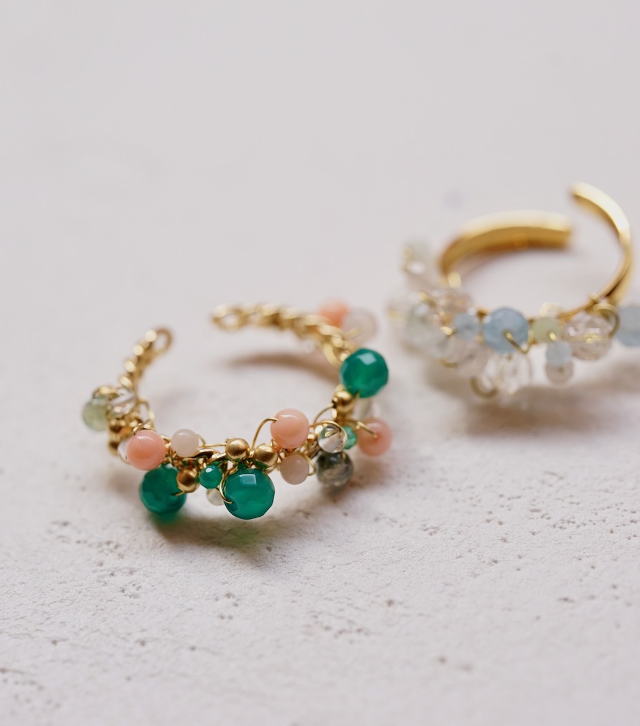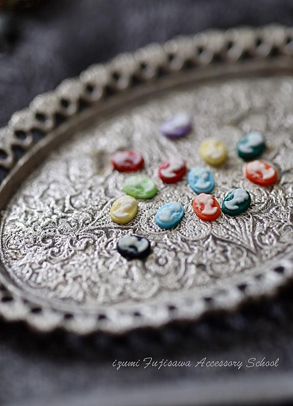 ミニミニカメオは一例で、小さなボタンのアクセサリー、ワイヤーで作るリング、小さな石をポロポロと揺らすように作るスワッグスタイルなどを今回の展示会のいくつかの括りで提案いたします。