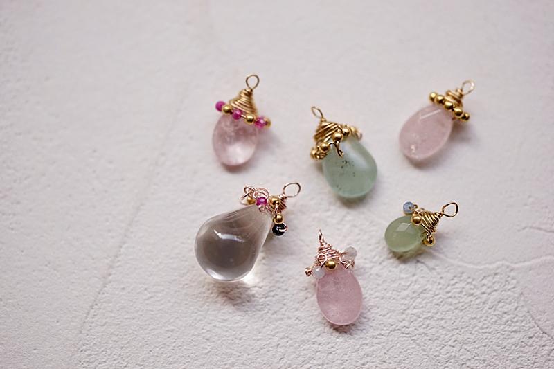 ・ワイヤーワークペンダント、リング、ピアス ・モード系アクセサリー(細かい石でのスワッグ)