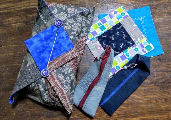 小物入れは帯で作ったもののようだ。硬いので縫いにくかったと思うが、裏地や芯などなくてもしっかりしている。
