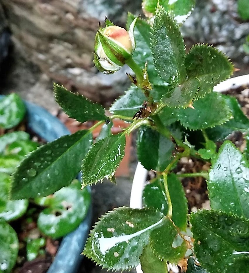 植え替えたのだけど、つぼみがついているのを見つけた。