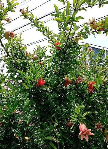 ザクロの花が咲いてて・・実も付けてる。