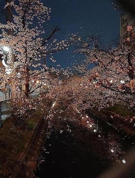 砂子水路の桜を、夜桜。。