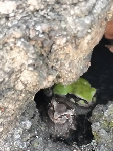 木の穴にカエルちゃん見つけました
