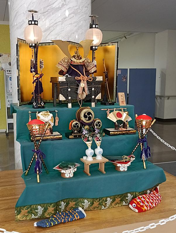市民プラザのホール部分には、5月人形の飾り付けがあった。