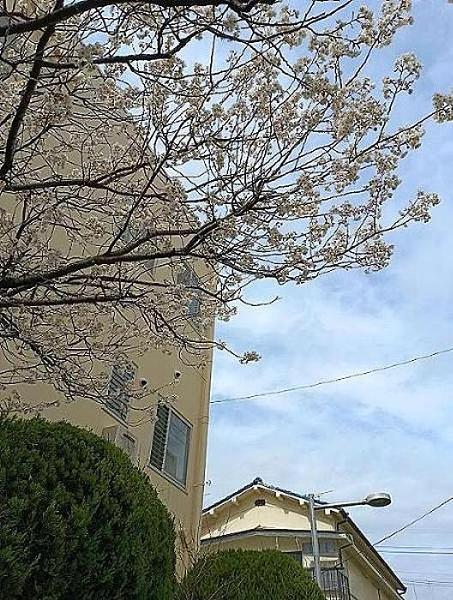 会館の後ろの道路沿いに、桜が咲いていた。