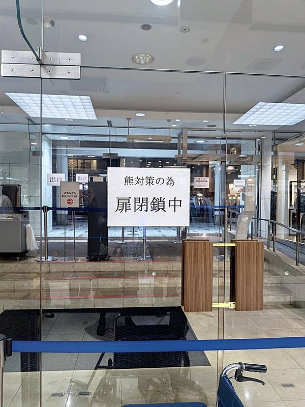 駅前のデパートもホテルも熊侵入予防で入口が自動でないことの断りが貼られておりました。
