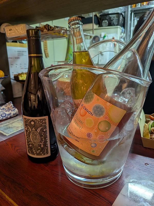 ワインは自然派ですし、輸入品が高くなっていることもあり、グラス800円から高いものは1700円までありました。過去に飲んで好きだったもの、好きな生産者さん、信頼のおけるワインバーの方のおすすめ、で、自分の好きなワインばかり出しました。