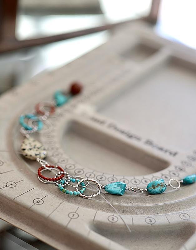 今までも花型のチョーカー(ターコイズマジック)、リッチに三連にしたターコイズネックレスなどを作りました。