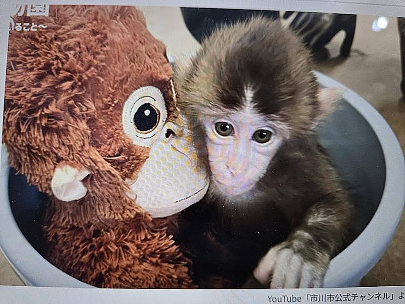 ご存じのない方に説明すると、千葉の市川市動物園で昨年の夏に生まれたニホンザルなのですが、母猿に育児放棄されてしまい、母親がわりに、オランウータンのぬいぐるみを与えられ、飼育員さんからミルクをもらって育ちました。