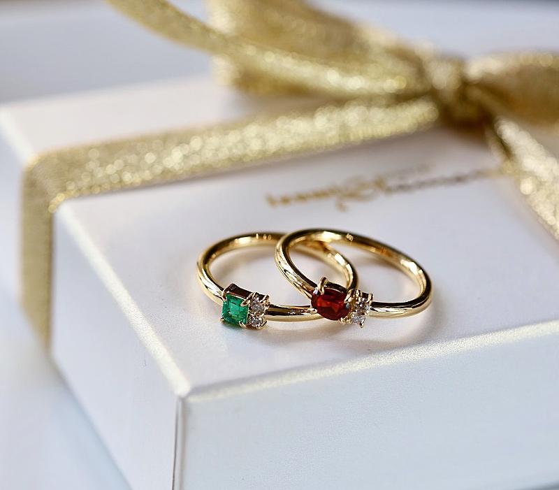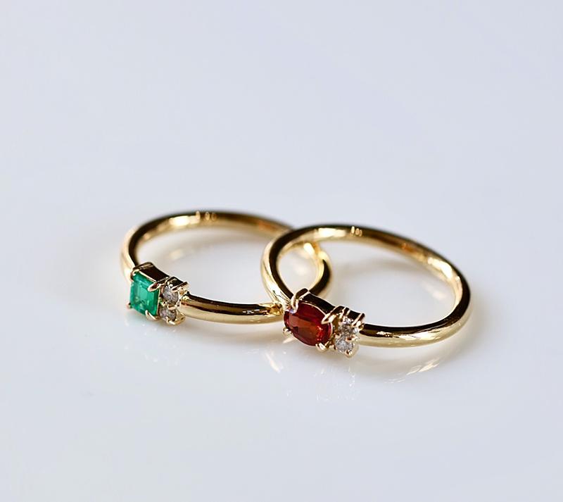 デザインはお客様からの指定でしたが、片方に2つのダイヤを入れるこの形とてもいいですね。リングは後ろまで同じ太さでこれもブランドのリングのようでリッチで素敵です。