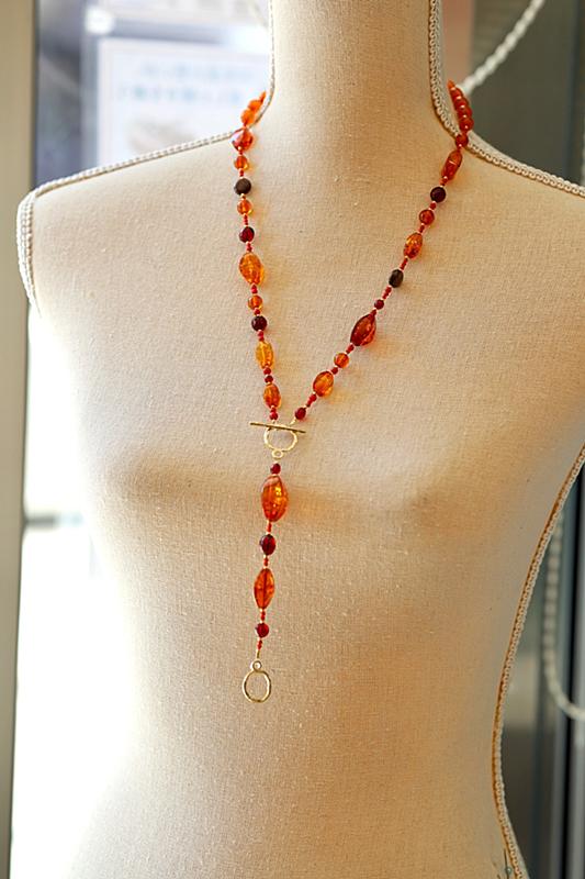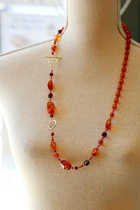オレンジと赤の組み合わせでとても生き生きとした表情のネックレス。たくさん着けていただけますように!