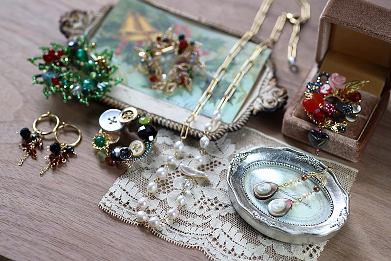 私どもが作ることもできますし、アクセサリースクールのレッスンにご参加いただけましたら、ご自身で組むこともできます。