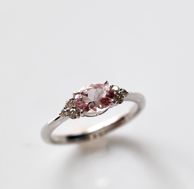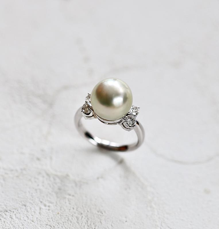 パールの脇に左右2つずつダイヤを配置してほしいというご依頼でした。