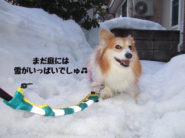 でも、家の庭にはまだ雪がたっぷりあるので散歩後は