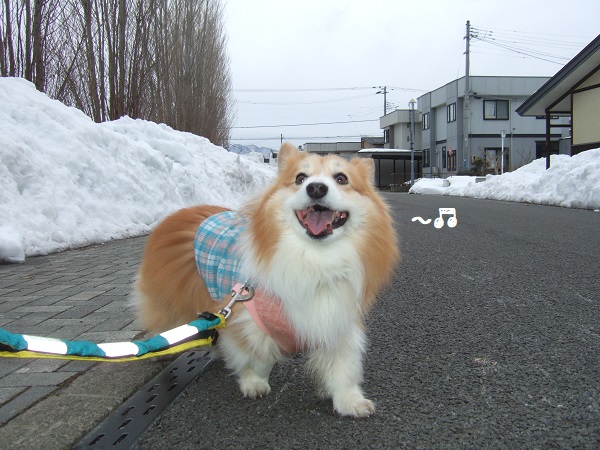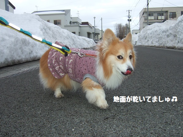 お散歩コースにほとんど雪がなくなり歩きやすくなったので