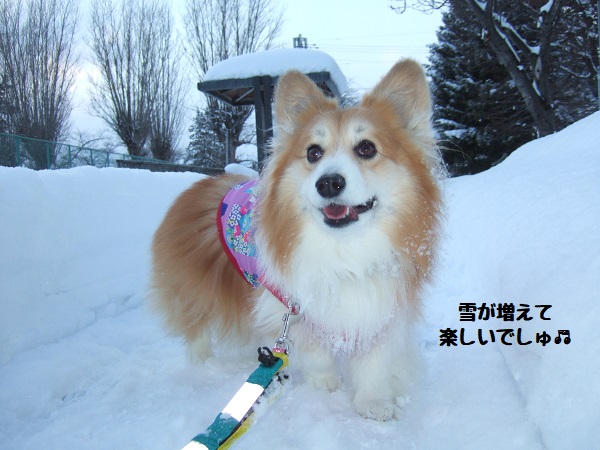 雪が増えてことちゃんはウッキウキでお散歩♪
